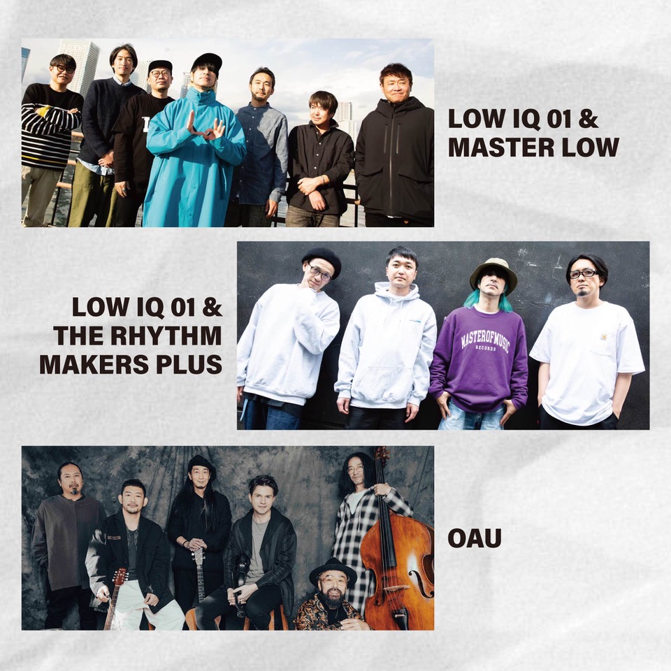 出演はお馴染み「LOW IQ 01 & MASTER LOW」、「LOW IQ 01 & THE RHYTHM MAKERS PLUS」 に加え、盟友BRAHMANの別バンド「OAU」がMOM初出演!! お見逃しなく!!!