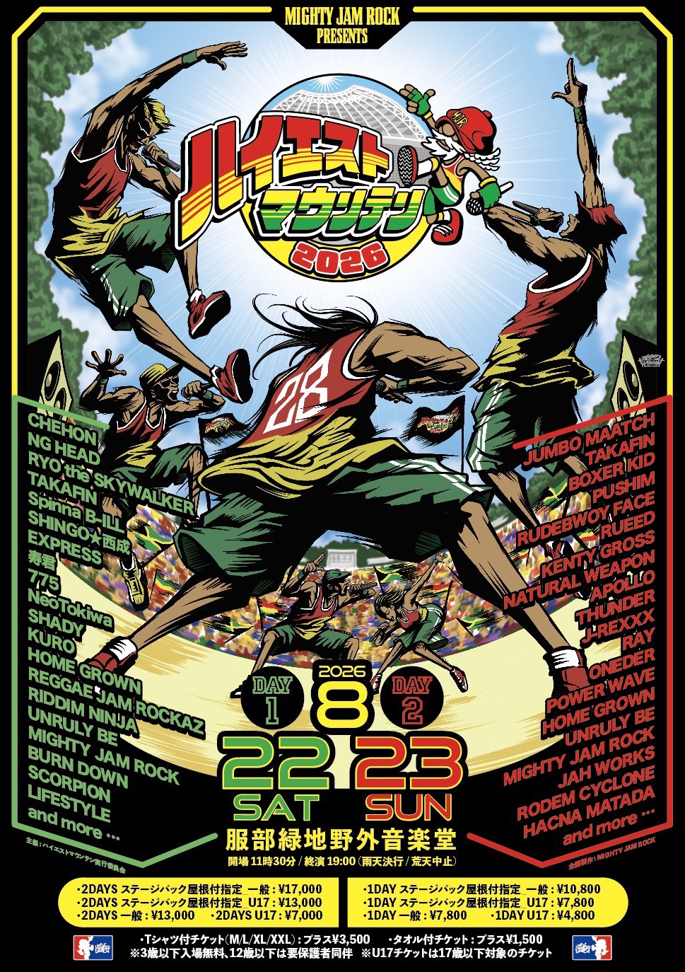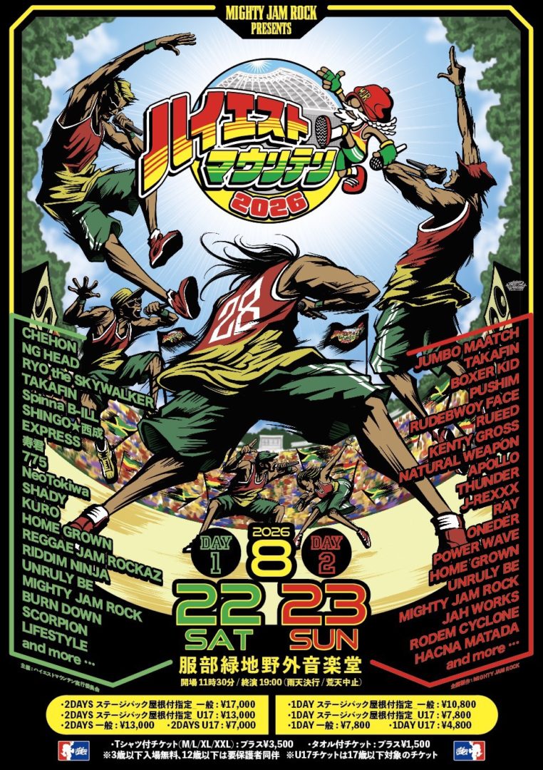 CHEHON / NG HEAD / RYO the SKYWALKER / TAKAFIN / SPINNA B-ILL / SHINGO★西成 / EXPRESS / 寿君 / 775 / NEOTOKIWA / SHADY / KURO / HOME GROWN / REGGAE JAM ROCKAZ / RIDDIM NINJA / UNRULY BE / MIGHTY JAM ROCK / BURN DOWN / SCORPION / LIFESTYLE / and more …